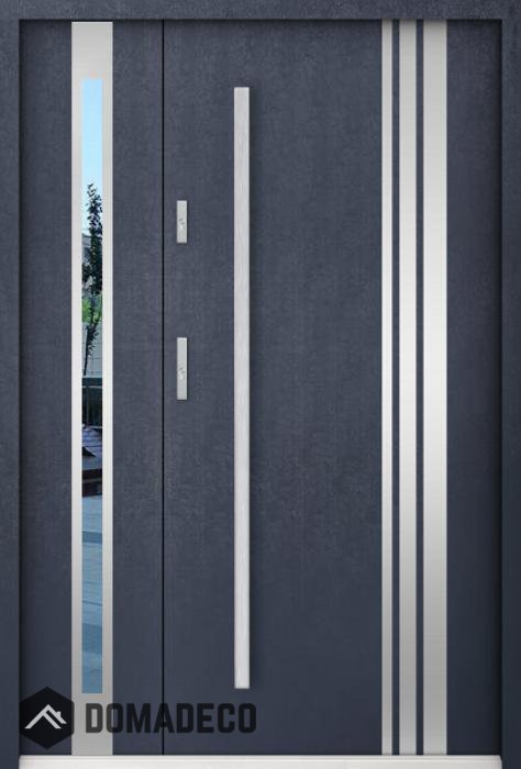 The door is made of stainless steel. Inside it is filled with PUR polyurethane foam and wood. The thickness of the door leaf is 55mm. Dual sealing system - one seal is in the dap of the frame and the other is located in the supporting part of the door leaf. They reduce vibration and protect your house from losing the heat. They don't change their volume under the influence of atmospheric conditions. The door frame has anti-burglar reinforcements in hinge parts and locking points.