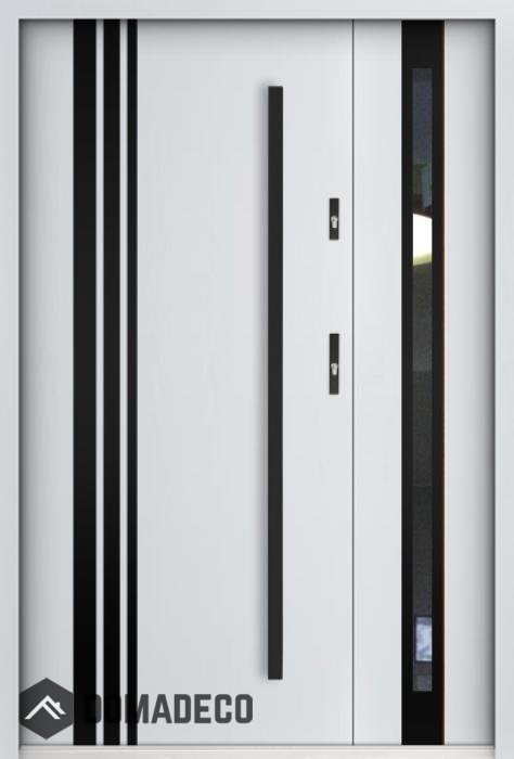 The door is made of stainless steel. Inside it is filled with PUR polyurethane foam and wood. The thickness of the door leaf is 55mm. Dual sealing system - one seal is in the dap of the frame and the other is located in the supporting part of the door leaf. They reduce vibration and protect your house from losing the heat. They don't change their volume under the influence of atmospheric conditions. The door frame has anti-burglar reinforcements in hinge parts and locking points.