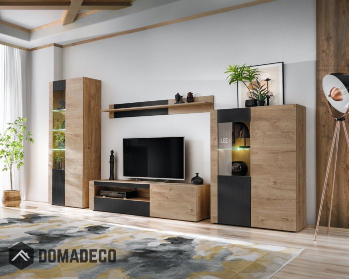 Display cabinets: tempered glass with LED lighting option, which adds an elegant touch and highlights the decorations.