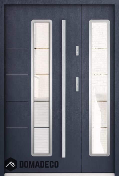 The door is made of stainless steel. Inside it is filled with PUR polyurethane foam and wood. The thickness of the door leaf is 55mm. Dual sealing system - one seal is in the dap of the frame and the other is located in the supporting part of the door leaf. They reduce vibration and protect your house from losing the heat. They don't change their volume under the influence of atmospheric conditions. The door frame has anti-burglar reinforcements in hinge parts and locking points.