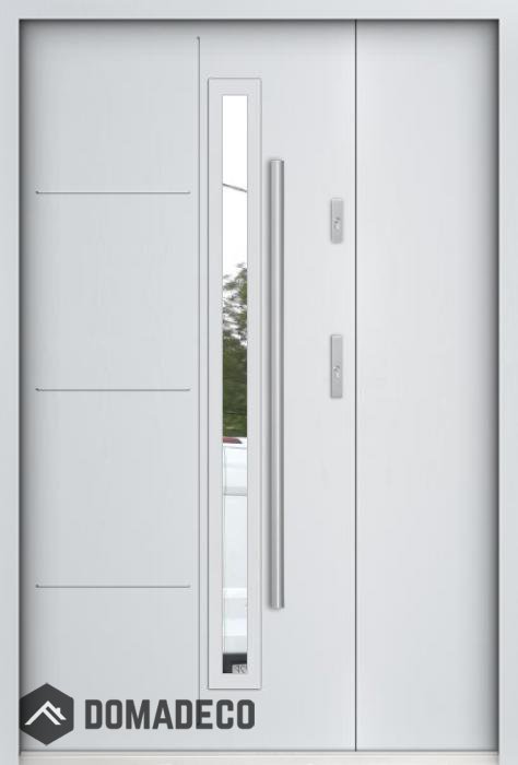 The door is made of stainless steel. Inside it is filled with PUR polyurethane foam and wood. The thickness of the door leaf is 55mm. Dual sealing system - one seal is in the dap of the frame and the other is located in the supporting part of the door leaf. They reduce vibration and protect your house from losing the heat. They don't change their volume under the influence of atmospheric conditions. The door frame has anti-burglar reinforcements in hinge parts and locking points.