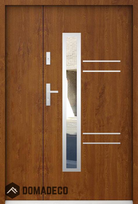 The door is made of stainless steel. Inside it is filled with PUR polyurethane foam and wood. The thickness of the door leaf is 55mm. Dual sealing system - one seal is in the dap of the frame and the other is located in the supporting part of the door leaf. They reduce vibration and protect your house from losing the heat. They don't change their volume under the influence of atmospheric conditions. The door frame has anti-burglar reinforcements in hinge parts and locking points.