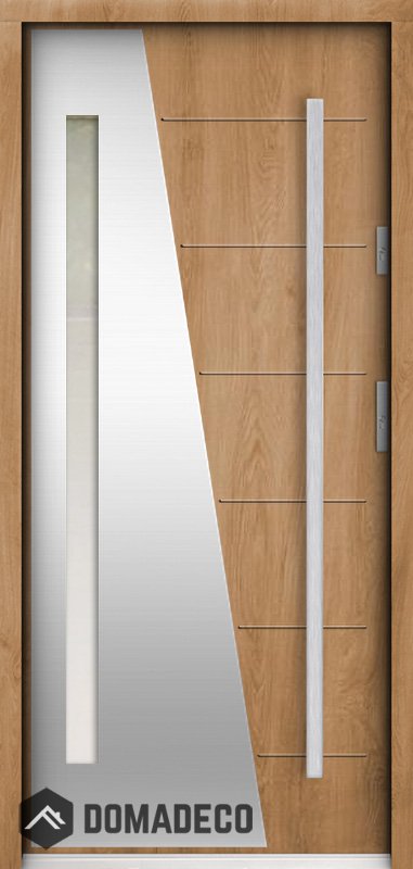 The door is made of stainless steel. Inside it is filled with PUR polyurethane foam and wood. The thickness of the door leaf is 55mm. Dual sealing system - one seal is in the dap of the frame and the other is located in the supporting part of the door leaf. They reduce vibration and protect your house from losing the heat. They don't change their volume under the influence of atmospheric conditions. The door frame has anti-burglar reinforcements in hinge parts and locking points.