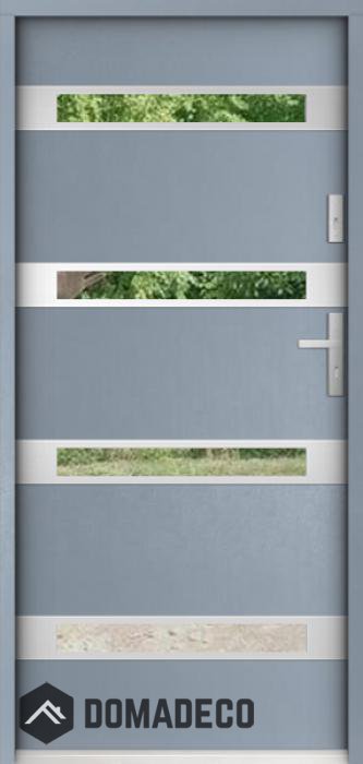 The door is made of stainless steel. Inside it is filled with PUR polyurethane foam and wood. The thickness of the door leaf is 55mm. Dual sealing system - one seal is in the dap of the frame and the other is located in the supporting part of the door leaf. They reduce vibration and protect your house from losing the heat. They don't change their volume under the influence of atmospheric conditions. The door frame has anti-burglar reinforcements in hinge parts and locking points.