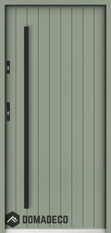 The door is made of stainless steel. Inside it is filled with PUR polyurethane foam and wood. The thickness of the door leaf is 55mm. Dual sealing system - one seal is in the dap of the frame and the other is located in the supporting part of the door leaf. They reduce vibration and protect your house from losing the heat. They don't change their volume under the influence of atmospheric conditions. The door frame has anti-burglar reinforcements in hinge parts and locking points.