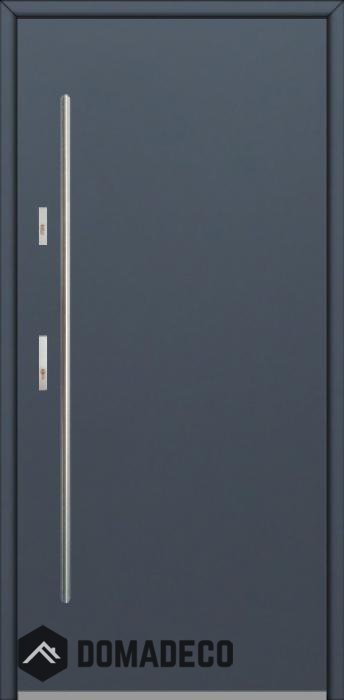 The door is made of stainless steel. Inside it is filled with PUR polyurethane foam and wood. The thickness of the door leaf is 64mm. Dual sealing system - one seal is in the dap of the frame and the other is located in the supporting part of the door leaf. They reduce vibration and protect your house from losing the heat. They don't change their volume under the influence of atmospheric conditions. The door frame has anti-burglar reinforcements in hinge parts and locking points.