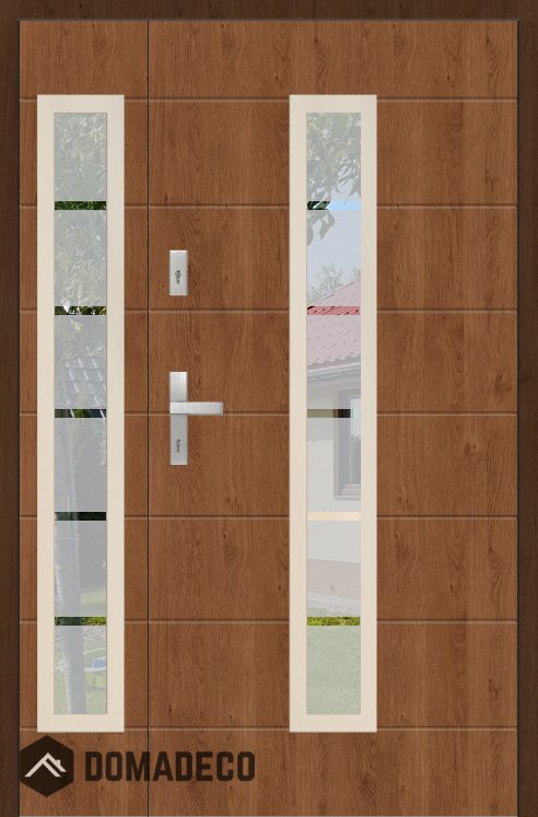 The door is made of stainless steel. Inside it is filled with PUR polyurethane foam and wood. The thickness of the door leaf is 54mm. Dual sealing system - one seal is in the dap of the frame and the other is located in the supporting part of the door leaf. They reduce vibration and protect your house from losing the heat. They don't change their volume under the influence of atmospheric conditions. The door frame has anti-burglar reinforcements in hinge parts and locking points.