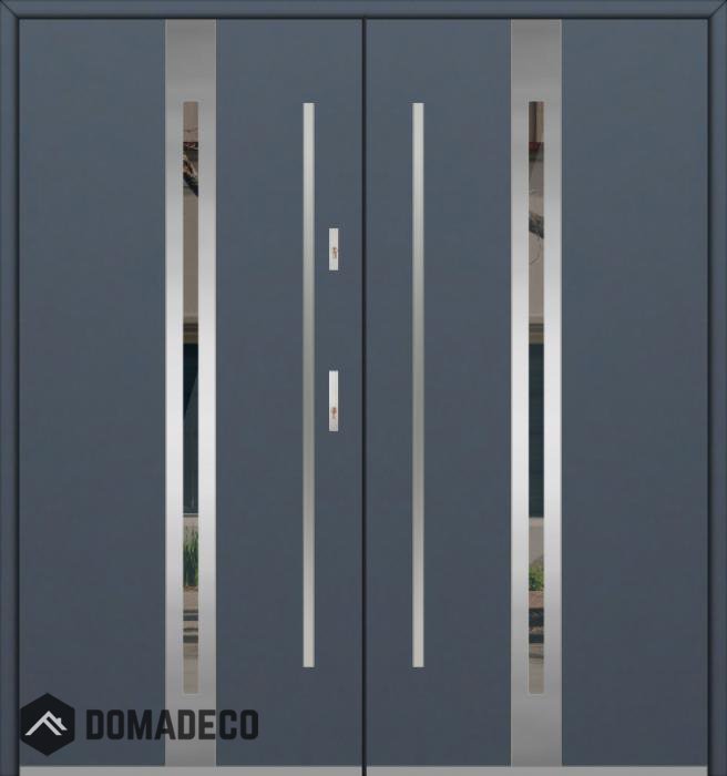 The door is made of stainless steel. Inside it is filled with PUR polyurethane foam and wood. The thickness of the door leaf is 54mm. Dual sealing system - one seal is in the dap of the frame and the other is located in the supporting part of the door leaf. They reduce vibration and protect your house from losing the heat. They don't change their volume under the influence of atmospheric conditions. The door frame has anti-burglar reinforcements in hinge parts and locking points.
