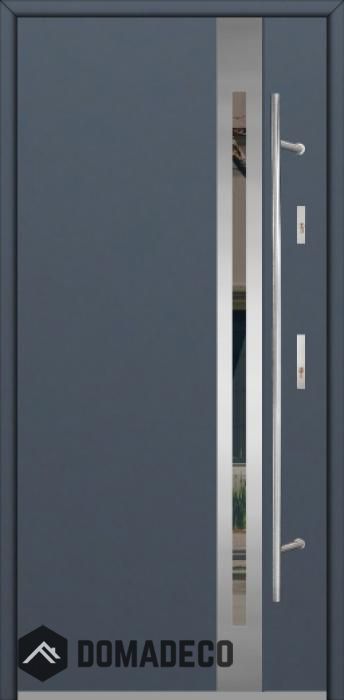 The door is made of stainless steel. Inside it is filled with PUR polyurethane foam and wood. The thickness of the door leaf is 64mm. Dual sealing system - one seal is in the dap of the frame and the other is located in the supporting part of the door leaf. They reduce vibration and protect your house from losing the heat. They don't change their volume under the influence of atmospheric conditions. The door frame has anti-burglar reinforcements in hinge parts and locking points.