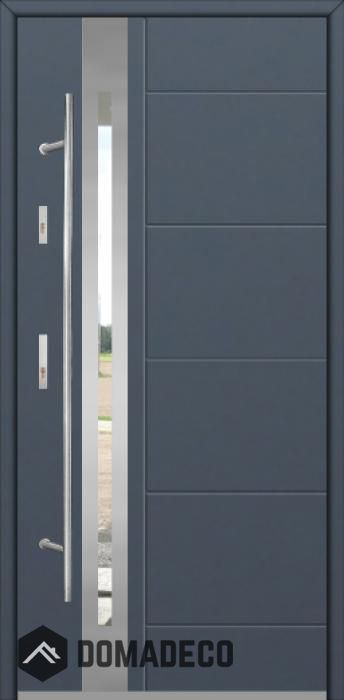 The door is made of stainless steel. Inside it is filled with PUR polyurethane foam and wood. The thickness of the door leaf is 64mm. Dual sealing system - one seal is in the dap of the frame and the other is located in the supporting part of the door leaf. They reduce vibration and protect your house from losing the heat. They don't change their volume under the influence of atmospheric conditions. The door frame has anti-burglar reinforcements in hinge parts and locking points.