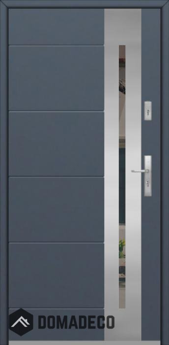 The door is made of stainless steel. Inside it is filled with PUR polyurethane foam and wood. The thickness of the door leaf is 64mm. Dual sealing system - one seal is in the dap of the frame and the other is located in the supporting part of the door leaf. They reduce vibration and protect your house from losing the heat. They don't change their volume under the influence of atmospheric conditions. The door frame has anti-burglar reinforcements in hinge parts and locking points.