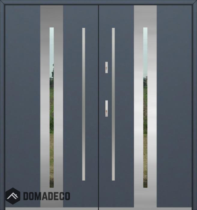 The door is made of stainless steel. Inside it is filled with PUR polyurethane foam and wood. The thickness of the door leaf is 54mm. Dual sealing system - one seal is in the dap of the frame and the other is located in the supporting part of the door leaf. They reduce vibration and protect your house from losing the heat. They don't change their volume under the influence of atmospheric conditions. The door frame has anti-burglar reinforcements in hinge parts and locking points.