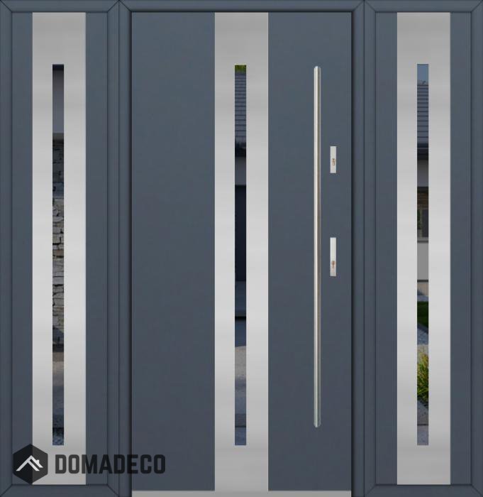 The door is made of stainless steel. Inside it is filled with PUR polyurethane foam and wood. The thickness of the door leaf is 54mm. Dual sealing system - one seal is in the dap of the frame and the other is located in the supporting part of the door leaf. They reduce vibration and protect your house from losing the heat. They don't change their volume under the influence of atmospheric conditions. The door frame has anti-burglar reinforcements in hinge parts and locking points.