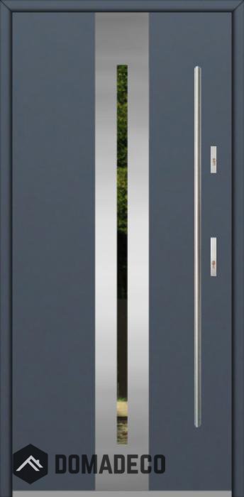 The door is made of stainless steel. Inside it is filled with PUR polyurethane foam and wood. The thickness of the door leaf is 64mm. Dual sealing system - one seal is in the dap of the frame and the other is located in the supporting part of the door leaf. They reduce vibration and protect your house from losing the heat. They don't change their volume under the influence of atmospheric conditions. The door frame has anti-burglar reinforcements in hinge parts and locking points.