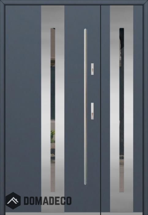 The door is made of stainless steel. Inside it is filled with PUR polyurethane foam and wood. The thickness of the door leaf is 54mm. Dual sealing system - one seal is in the dap of the frame and the other is located in the supporting part of the door leaf. They reduce vibration and protect your house from losing the heat. They don't change their volume under the influence of atmospheric conditions. The door frame has anti-burglar reinforcements in hinge parts and locking points.