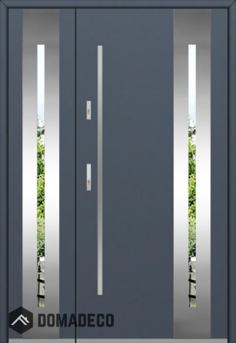 The door is made of stainless steel. Inside it is filled with PUR polyurethane foam and wood. The thickness of the door leaf is 54mm. Dual sealing system - one seal is in the dap of the frame and the other is located in the supporting part of the door leaf. They reduce vibration and protect your house from losing the heat. They don't change their volume under the influence of atmospheric conditions. The door frame has anti-burglar reinforcements in hinge parts and locking points.