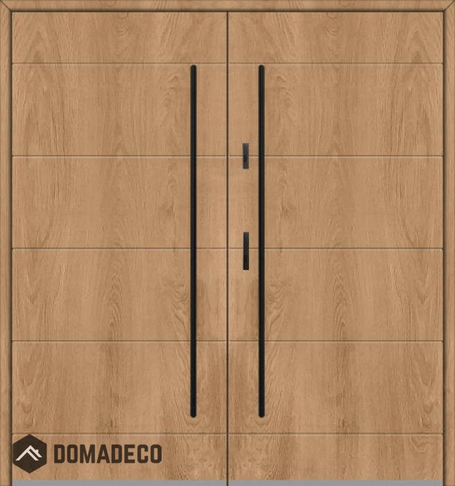 The door is made of stainless steel. Inside it is filled with PUR polyurethane foam and wood. The thickness of the door leaf is 54mm. Dual sealing system - one seal is in the dap of the frame and the other is located in the supporting part of the door leaf. They reduce vibration and protect your house from losing the heat. They don't change their volume under the influence of atmospheric conditions. The door frame has anti-burglar reinforcements in hinge parts and locking points.