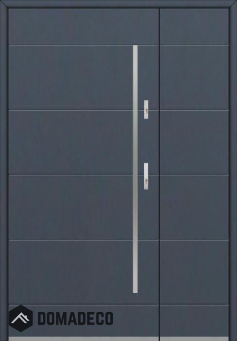 The door is made of stainless steel. Inside it is filled with PUR polyurethane foam and wood. The thickness of the door leaf is 54mm. Dual sealing system - one seal is in the dap of the frame and the other is located in the supporting part of the door leaf. They reduce vibration and protect your house from losing the heat. They don't change their volume under the influence of atmospheric conditions. The door frame has anti-burglar reinforcements in hinge parts and locking points.