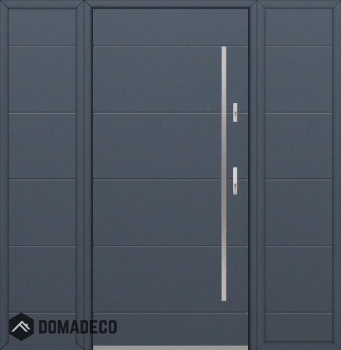 The door is made of stainless steel. Inside it is filled with PUR polyurethane foam and wood. The thickness of the door leaf is 54mm. Dual sealing system - one seal is in the dap of the frame and the other is located in the supporting part of the door leaf. They reduce vibration and protect your house from losing the heat. They don't change their volume under the influence of atmospheric conditions. The door frame has anti-burglar reinforcements in hinge parts and locking points.
