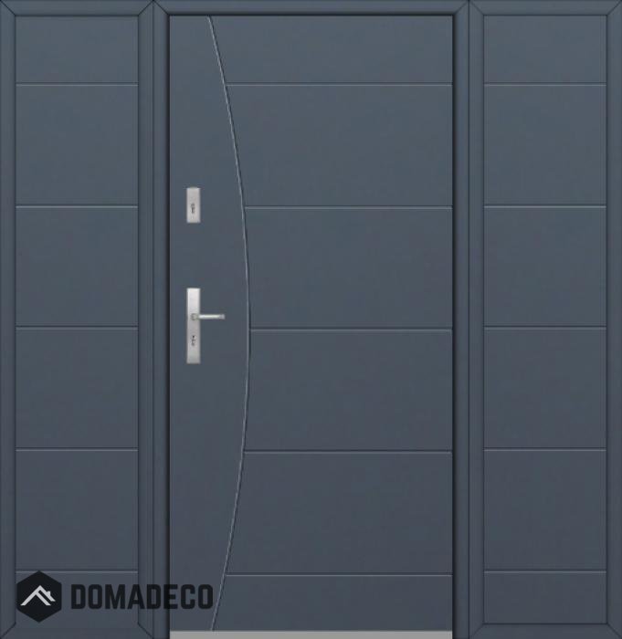 The door is made of stainless steel. Inside it is filled with PUR polyurethane foam and wood. The thickness of the door leaf is 54mm. Dual sealing system - one seal is in the dap of the frame and the other is located in the supporting part of the door leaf. They reduce vibration and protect your house from losing the heat. They don't change their volume under the influence of atmospheric conditions. The door frame has anti-burglar reinforcements in hinge parts and locking points.