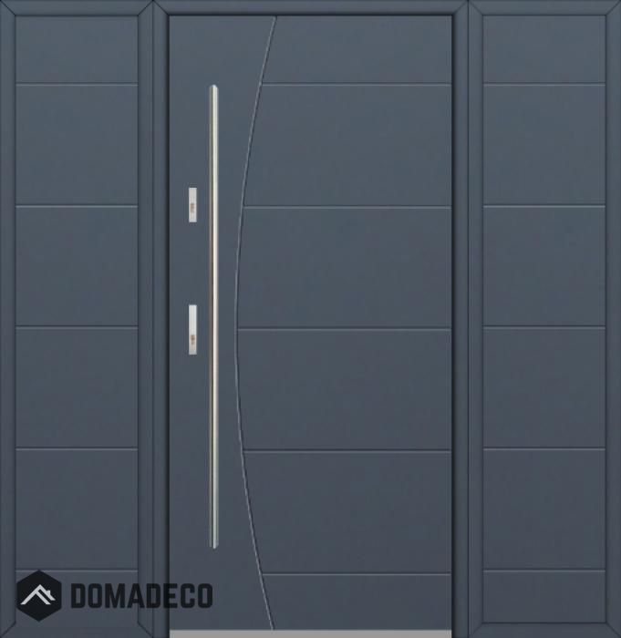 The door is made of stainless steel. Inside it is filled with PUR polyurethane foam and wood. The thickness of the door leaf is 54mm. Dual sealing system - one seal is in the dap of the frame and the other is located in the supporting part of the door leaf. They reduce vibration and protect your house from losing the heat. They don't change their volume under the influence of atmospheric conditions. The door frame has anti-burglar reinforcements in hinge parts and locking points.
