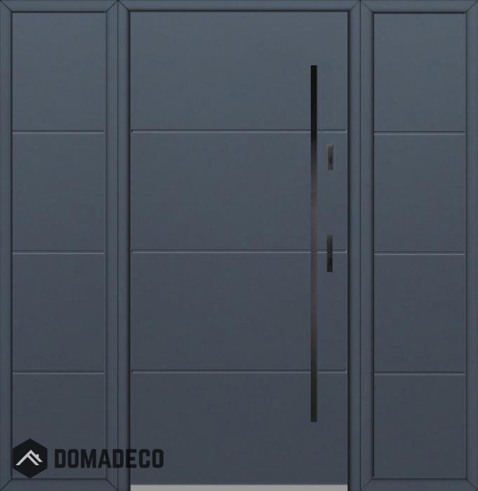 The door is made of stainless steel. Inside it is filled with PUR polyurethane foam and wood. The thickness of the door leaf is 54mm. Dual sealing system - one seal is in the dap of the frame and the other is located in the supporting part of the door leaf. They reduce vibration and protect your house from losing the heat. They don't change their volume under the influence of atmospheric conditions. The door frame has anti-burglar reinforcements in hinge parts and locking points.