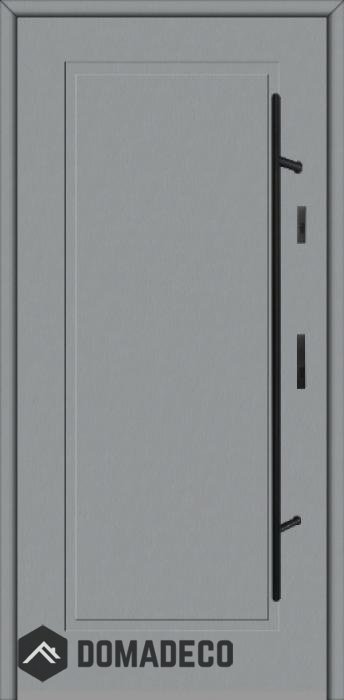 The door is made of stainless steel. Inside it is filled with PUR polyurethane foam and wood. The thickness of the door leaf is 64mm. Dual sealing system - one seal is in the dap of the frame and the other is located in the supporting part of the door leaf. They reduce vibration and protect your house from losing the heat. They don't change their volume under the influence of atmospheric conditions. The door frame has anti-burglar reinforcements in hinge parts and locking points.