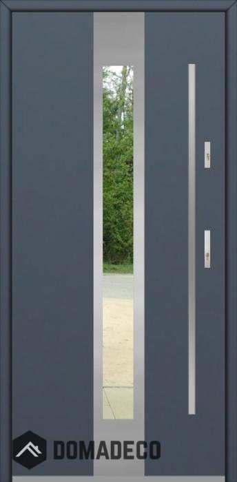 The door is made of stainless steel. Inside it is filled with PUR polyurethane foam and wood. The thickness of the door leaf is 64mm. Dual sealing system - one seal is in the dap of the frame and the other is located in the supporting part of the door leaf. They reduce vibration and protect your house from losing the heat. They don't change their volume under the influence of atmospheric conditions. The door frame has anti-burglar reinforcements in hinge parts and locking points.