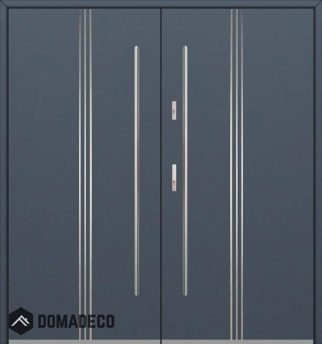 The door is made of stainless steel. Inside it is filled with PUR polyurethane foam and wood. The thickness of the door leaf is 54mm. Dual sealing system - one seal is in the dap of the frame and the other is located in the supporting part of the door leaf. They reduce vibration and protect your house from losing the heat. They don't change their volume under the influence of atmospheric conditions. The door frame has anti-burglar reinforcements in hinge parts and locking points.