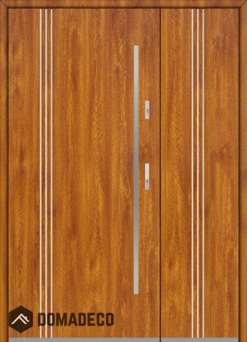 The door is made of stainless steel. Inside it is filled with PUR polyurethane foam and wood. The thickness of the door leaf is 54mm. Dual sealing system - one seal is in the dap of the frame and the other is located in the supporting part of the door leaf. They reduce vibration and protect your house from losing the heat. They don't change their volume under the influence of atmospheric conditions. The door frame has anti-burglar reinforcements in hinge parts and locking points.