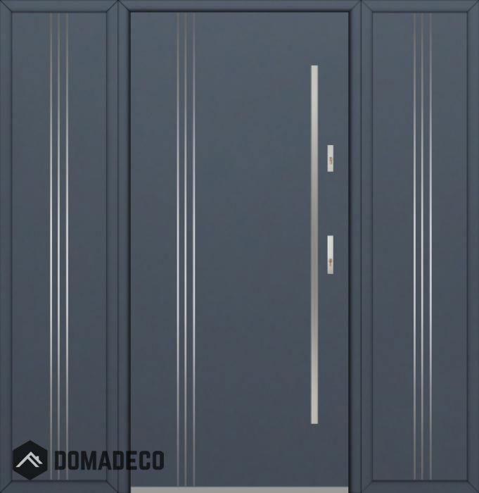 The door is made of stainless steel. Inside it is filled with PUR polyurethane foam and wood. The thickness of the door leaf is 54mm. Dual sealing system - one seal is in the dap of the frame and the other is located in the supporting part of the door leaf. They reduce vibration and protect your house from losing the heat. They don't change their volume under the influence of atmospheric conditions. The door frame has anti-burglar reinforcements in hinge parts and locking points.