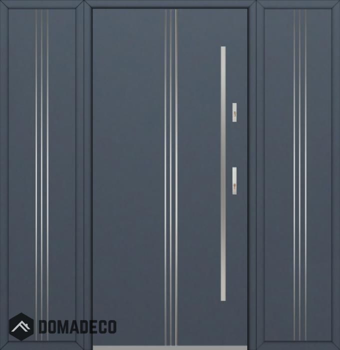 The door is made of stainless steel. Inside it is filled with PUR polyurethane foam and wood. The thickness of the door leaf is 54mm. Dual sealing system - one seal is in the dap of the frame and the other is located in the supporting part of the door leaf. They reduce vibration and protect your house from losing the heat. They don't change their volume under the influence of atmospheric conditions. The door frame has anti-burglar reinforcements in hinge parts and locking points.