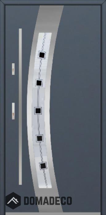 The door is made of stainless steel. Inside it is filled with PUR polyurethane foam and wood. The thickness of the door leaf is 64mm. Dual sealing system - one seal is in the dap of the frame and the other is located in the supporting part of the door leaf. They reduce vibration and protect your house from losing the heat. They don't change their volume under the influence of atmospheric conditions. The door frame has anti-burglar reinforcements in hinge parts and locking points.