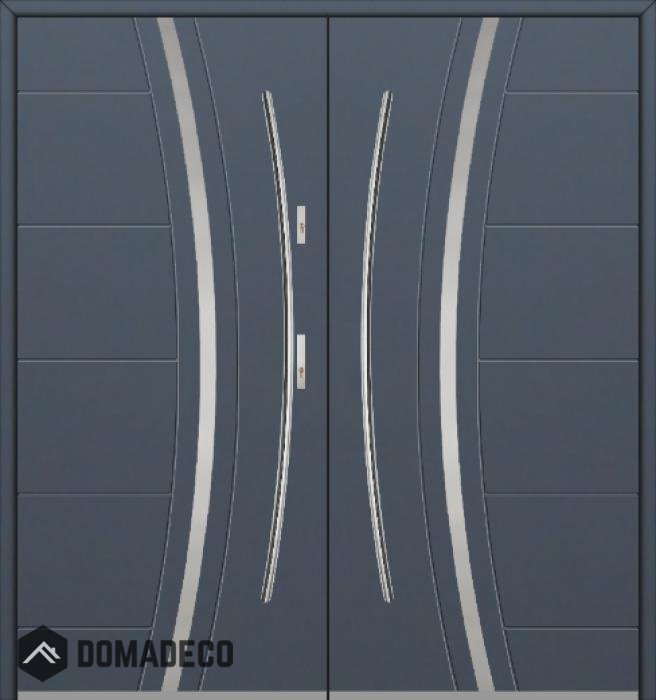 The door is made of stainless steel. Inside it is filled with PUR polyurethane foam and wood. The thickness of the door leaf is 54mm. Dual sealing system - one seal is in the dap of the frame and the other is located in the supporting part of the door leaf. They reduce vibration and protect your house from losing the heat. They don't change their volume under the influence of atmospheric conditions. The door frame has anti-burglar reinforcements in hinge parts and locking points.