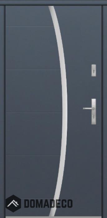 The door is made of stainless steel. Inside it is filled with PUR polyurethane foam and wood. The thickness of the door leaf is 64mm. Dual sealing system - one seal is in the dap of the frame and the other is located in the supporting part of the door leaf. They reduce vibration and protect your house from losing the heat. They don't change their volume under the influence of atmospheric conditions. The door frame has anti-burglar reinforcements in hinge parts and locking points.