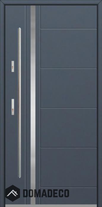 The door is made of stainless steel. Inside it is filled with PUR polyurethane foam and wood. The thickness of the door leaf is 64mm. Dual sealing system - one seal is in the dap of the frame and the other is located in the supporting part of the door leaf. They reduce vibration and protect your house from losing the heat. They don't change their volume under the influence of atmospheric conditions. The door frame has anti-burglar reinforcements in hinge parts and locking points.