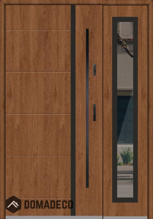 The door is made of stainless steel. Inside it is filled with PUR polyurethane foam and wood. The thickness of the door leaf is 54mm. Dual sealing system - one seal is in the dap of the frame and the other is located in the supporting part of the door leaf. They reduce vibration and protect your house from losing the heat. They don't change their volume under the influence of atmospheric conditions. The door frame has anti-burglar reinforcements in hinge parts and locking points.