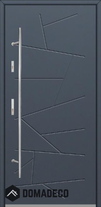 The door is made of stainless steel. Inside it is filled with PUR polyurethane foam and wood. The thickness of the door leaf is 64mm. Dual sealing system - one seal is in the dap of the frame and the other is located in the supporting part of the door leaf. They reduce vibration and protect your house from losing the heat. They don't change their volume under the influence of atmospheric conditions. The door frame has anti-burglar reinforcements in hinge parts and locking points.
