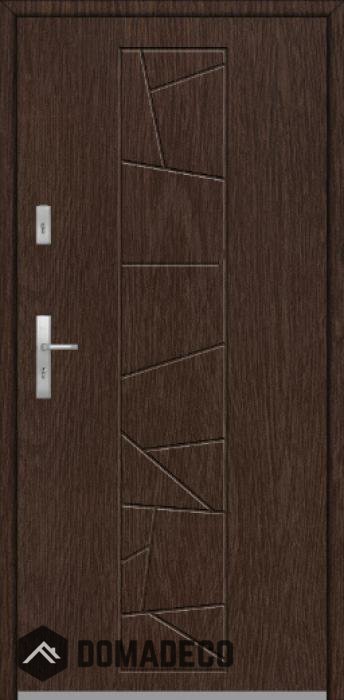 The door is made of stainless steel. Inside it is filled with PUR polyurethane foam and wood. The thickness of the door leaf is 64mm. Dual sealing system - one seal is in the dap of the frame and the other is located in the supporting part of the door leaf. They reduce vibration and protect your house from losing the heat. They don't change their volume under the influence of atmospheric conditions. The door frame has anti-burglar reinforcements in hinge parts and locking points.