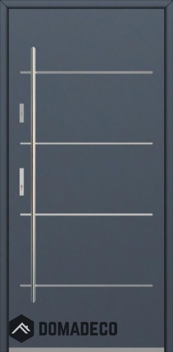 Modern design based on new technology consisting of flushing stainless steel elements on the door surface.