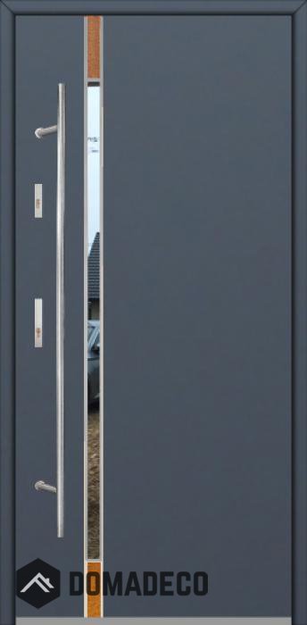Modern design based on new technology consisting of flushing stainless steel elements on the door surface.