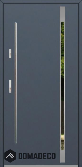 Modern design based on new technology consisting of flushing stainless steel elements on the door surface.