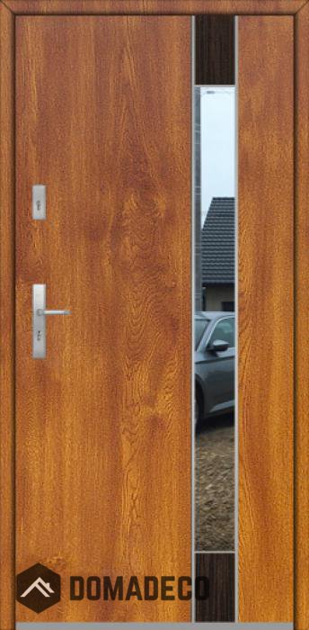 Modern design based on new technology consisting of flushing stainless steel elements on the door surface.