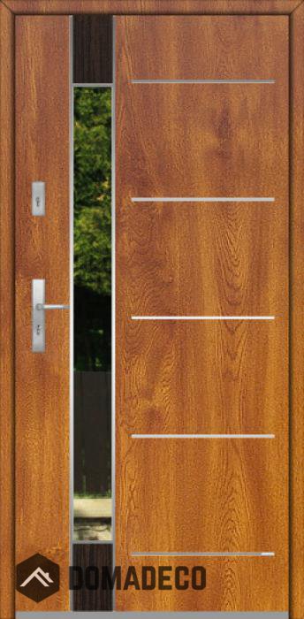 Modern design based on new technology consisting of flushing stainless steel elements on the door surface.