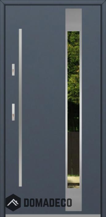 Modern design based on new technology consisting of flushing stainless steel elements on the door surface.