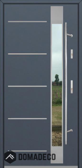 Modern design based on new technology consisting of flushing stainless steel elements on the door surface.