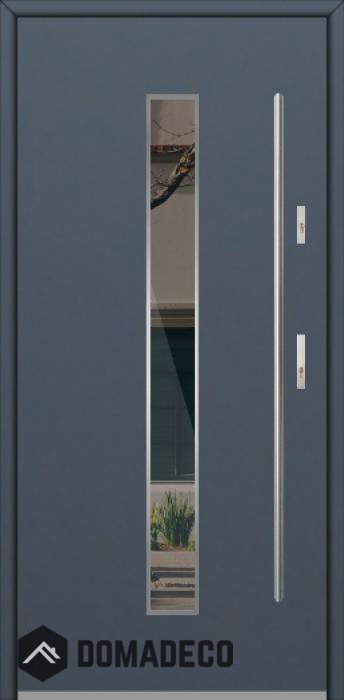 Modern design based on new technology consisting of flushing stainless steel elements on the door surface.