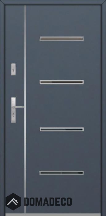 Modern design based on new technology consisting of flushing stainless steel elements on the door surface.