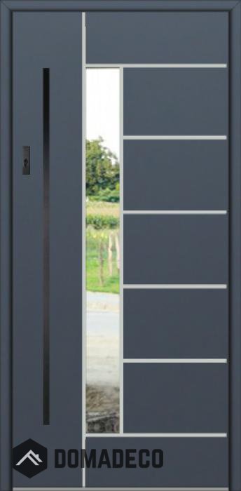 Modern design based on new technology consisting of flushing stainless steel elements on the door surface.