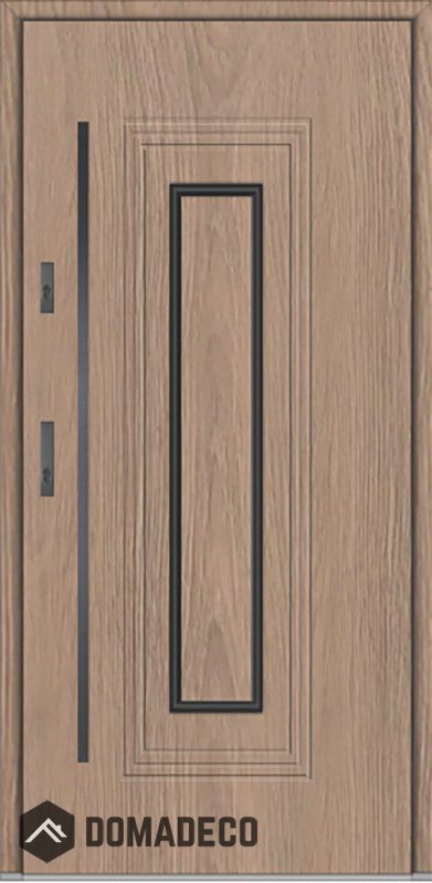 The door is made of stainless steel. Inside it is filled with PUR polyurethane foam and wood. The thickness of the door leaf is 64mm. Dual sealing system - one seal is in the dap of the frame and the other is located in the supporting part of the door leaf. They reduce vibration and protect your house from losing the heat. They don't change their volume under the influence of atmospheric conditions. The door frame has anti-burglar reinforcements in hinge parts and locking points.